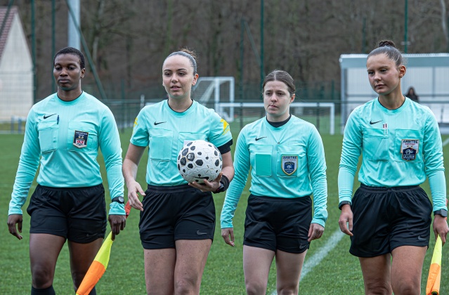 Arbitres : Clara Blanchais assistée de Marine Dupuis et Aminata Bah. 4e arbitre : Coleen Robiquet